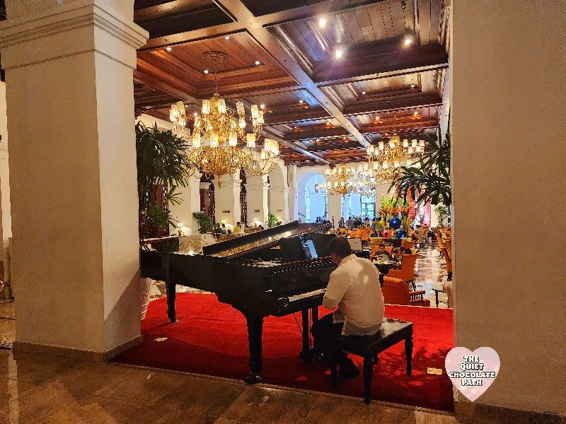 Just a few steps away, back at the elegant Lobby Lounge, the mood softened into something more serene. A pianist, dressed simply and elegantly, played timeless classics on a glossy piano tucked into one corner. No lyrics, no fanfare—just pure melody. It wasn’t Filipino folk music, but rather instrumental renditions of international classics that echoed gently throughout the lounge like whispered memories. There’s something about live piano music that makes everything feel more cinematic—like your life is unfolding in slow motion, with grace.