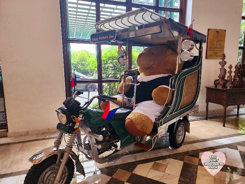 And then there’s Willy the Bear, the Manila Hotel’s beloved giant mascot, now delightfully perched on Siklesa near the entrance. Yes, a motor-drawn kalesa. How cute is that? It’s the kind of quirky, heartwarming detail that children adore and adults can’t help but smile at. Willy doesn’t speak, of course, but his presence speaks volumes—about how this heritage hotel doesn’t take itself too seriously, how it weaves joy into its grandeur.