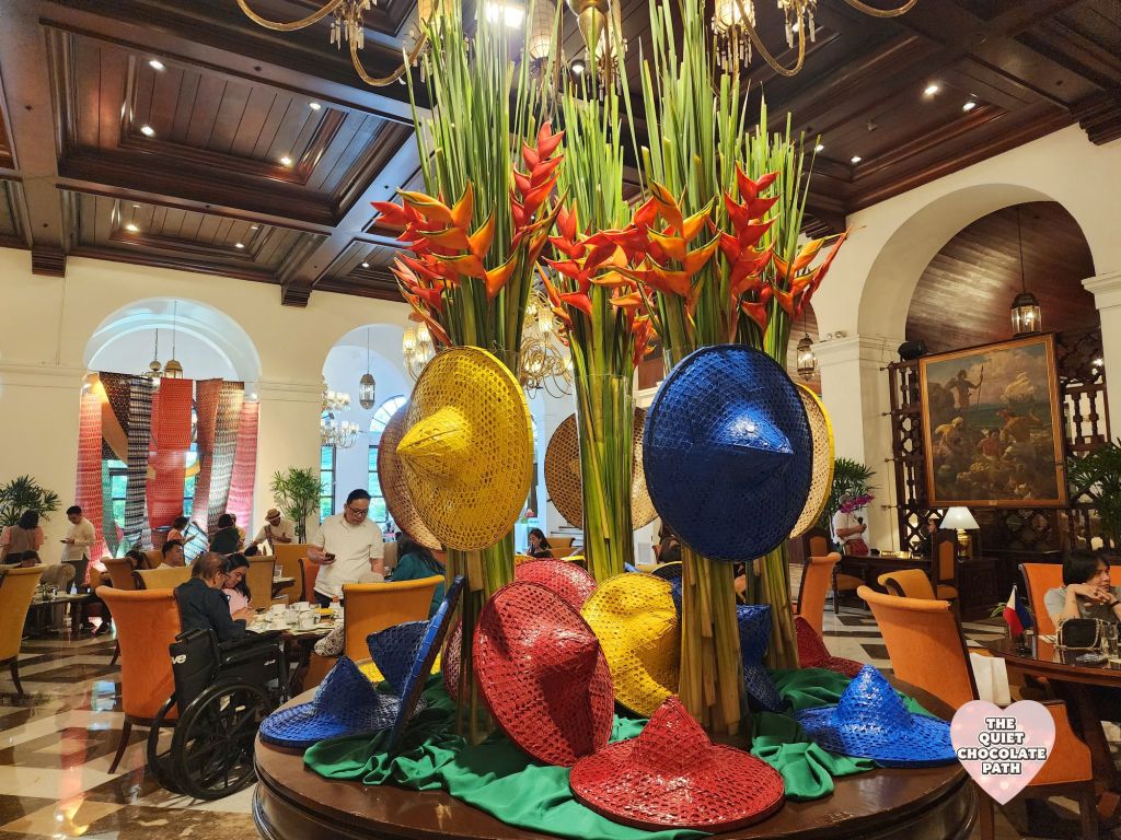 This month, the hotel’s motif pays homage to the T’boli tribes of Mindanao with an artistic theme titled “Woven Dream.” Centerstage is Thalak, the intricate handwoven fabric created by T’boli women, also known as Dreamweavers. These fabrics are more than garments. Each design whispers stories of dreams, folklore, and ancestry—a culture kept alive in threads and textures. Even the table centerpieces featured the colorful salakot, a beautiful nod to our diverse identity.